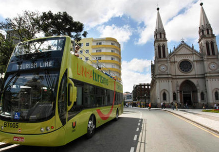The Linha Turismo is a special city tour that visits the main tourist attractions in Curitiba. It is possible to visit the parks, squares and the rest of the city's tourist attractions. Considered one of the best in the country, the Linha Turismo is available every thirty minutes and has a two and a half-hour tour, which travels around forty-four kilometers. The tour starts at Praça Tiradentes, but it is possible to join the tour at any moment.